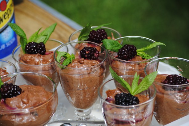 Chocolate mousse garnished with blackberries and mint sprigs was the perfect finish to our luncheon.