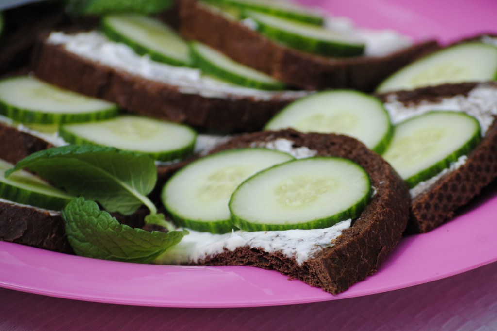Refreshing little cucumber sandwiches on rye. Very tasty!