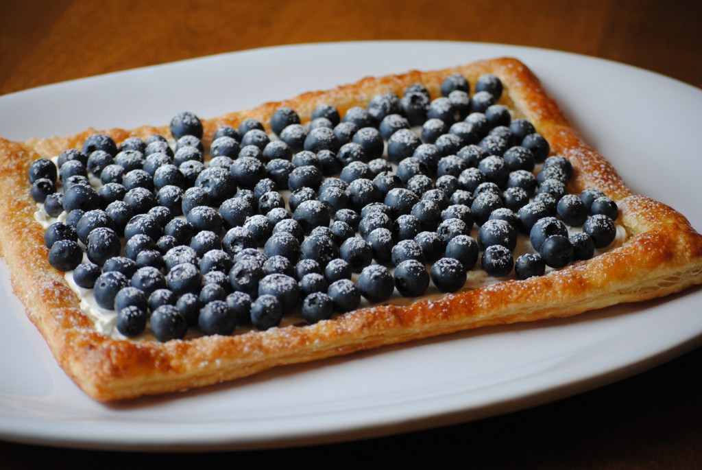 5. Arrange the blueberries in a single layer over the filling and sprinkle with the remaining tablespoon of confectioners’ sugar.