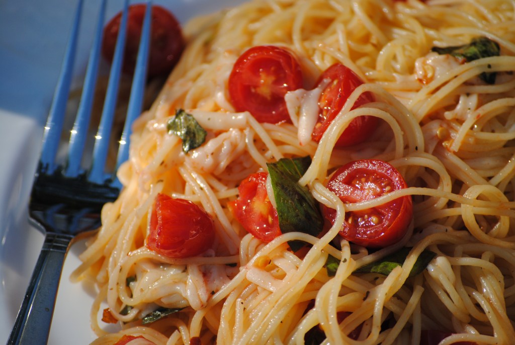 What is it about basil? It is the herb I first fell in love with. For me, the combination of basil with fresh tomato and pasta (or bread) is truly one of the most remarkable food marriages on Earth. Red, white, and green. Tomato, carb of your choice, and sweet basil. The colors of the Italian flag are also red, white, and green. Coincidence? I think not. Those Italians really know what they are doing. Pasta alone is the greatest invention known to mankind. My wanna-be-Italian heart still beats fervently. My love for pasta still grows abundantly. No recipe today. You don’t need one. Begin by boiling some pasta. While the water strives to reach 100°C, cut up some cherry tomatoes or grape tomatoes (or really any tomatoes will do). Sprinkle with kosher salt and fresh ground pepper. Toss with some olive oil to coat and add heaps of fresh basil. I like to tear mine up to release the flavor and aroma. You could also cut it up or use whole leaves. Let that all mesh together for a bit. Once the pasta is cooked, drain and combine with the tomato mixture. The heat of the pasta will warm the tomatoes and lend a beautiful sweetness. Add some freshly grated parmesan or aged cheese of your choice. If you are not in the mood for pasta (stranger things have happened), you could grace some heavenly bread with the tomato mixture. (Yes, I am addicted to carbs.)